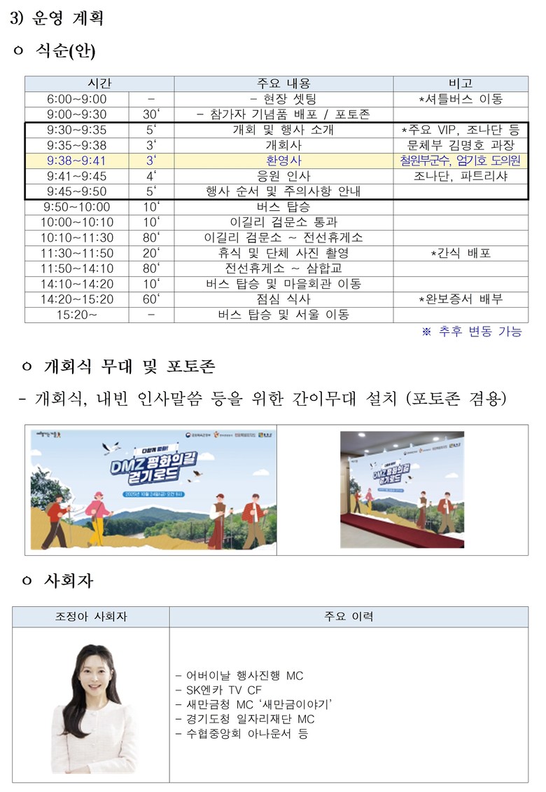 이희열 강원특별자치도 기획조정실장은 “디엠지(DMZ)는 분단의 상징이지만, 동시에 평화와 생명의 공간으로 새롭게 자리매김하고 있다”며 “이번 걷기 행사를 통해 많은 이들이 디엠지(DMZ)의 역사적 의미와 자연의 아름다움을 직접 체험하길 바란다”고 밝혔다.