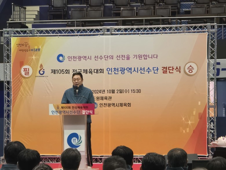 [인천 세계타임즈=심하린 기자] 인천시의회 문화복지위원회 신충식 제1부위원장(국·서구4)이 인천시립도원체육관에서 개최된 ‘제105회 전국체육대회 인천광역시 선수단 결단식’ 현장을 찾아 선수들을 격려했다.