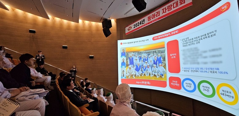 이날 현장 동아리자랑대회에서 프로세스 개선을 통한 안전사고 예방 사례, 작업환경 개선으로 직원 만족도 제고를 비롯한 위생관리시스템 개선, 생산성과 품질향상, 불량률 최소화, 용수절감 등에 관한 개선사례들이 발표되며 큰 호응과 아낌없는 박수를 받았다.
