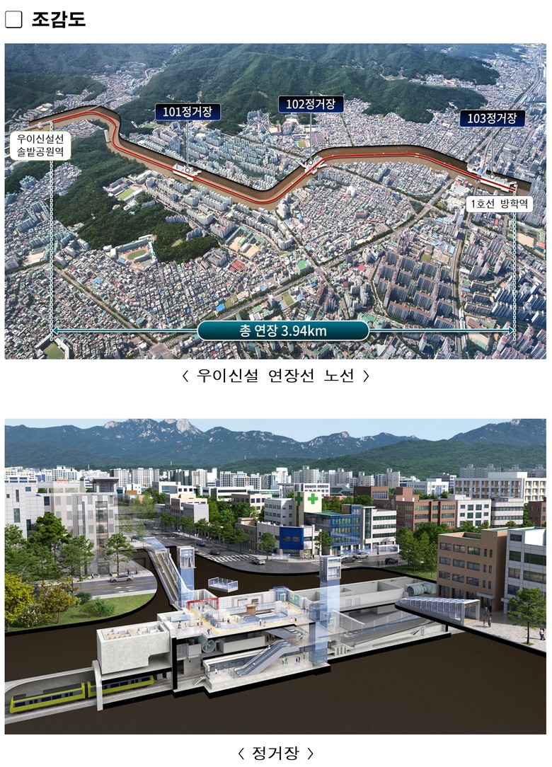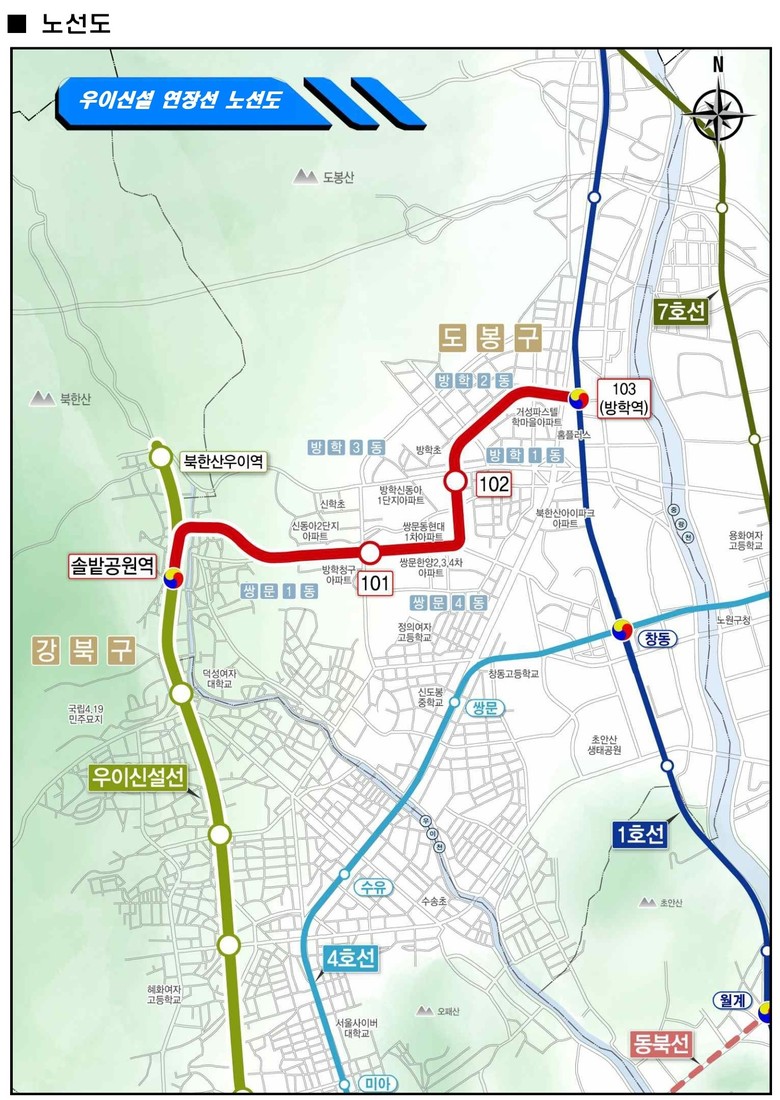 - 솔밭공원역(우이신설선)~방학역(1호선) 정거장 3개소 신설…동북권 지역의 교통 불편 해소