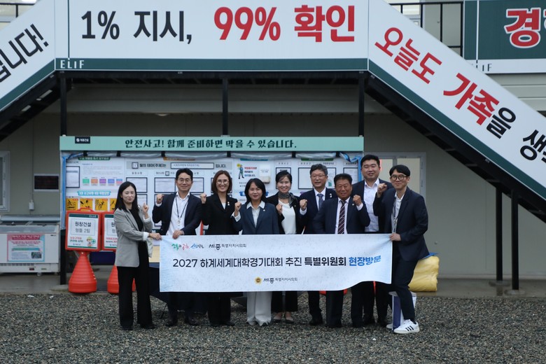[세종 세계타임즈=이채봉 기자] 세종특별자치시의회(의장 임채성) 2027 하계세계대학경기대회 추진 특별위원회(위원장 김현미, 이하 특별위원회)는 지난 13일 합강동 일원에서 추진 중인 선수촌 건립 현장을 방문하여 공정 진행 상황을 점검하고 향후 활용 방안에 대해 논의했다.