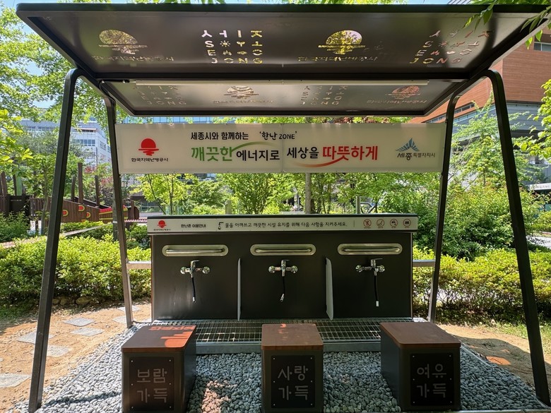 온수 세족장은 3명의 시민들이 동시에 사용할 수 있는 규모이며, 한글문화도시 세종시의 특색을 반영한 간판과 의자 등을 설치했다.