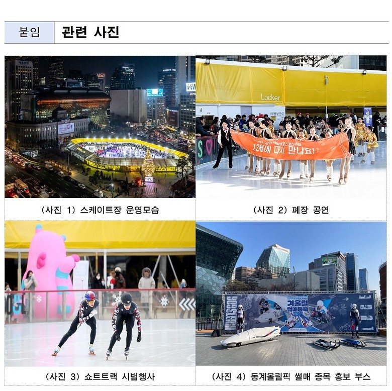 한편 서울광장 스케이트장은 올해 12월 18일(금)에 다시 시민 곁으로 돌아올 예정이다. 시는 더 발전된 시즌 운영을 위해 외국인 이용객 편의 증진 방안 모색, 다양한 연계 프로그램 발굴 등 노력을 지속할 계획이다.