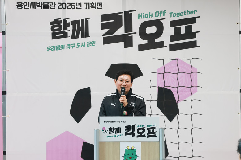 대회 현장을 찾아 참가팀을 응원한 이상일 시장은 이어 용인시박물관에서 열린 2026년 기획전 ‘함께 킥오프, 우리들의 축구도시 용인’ 개막식에도 참석했다.