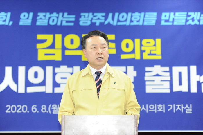 저는 오늘 제8대 광주시의회 후반기 의장선거, 출마를 선언합니다