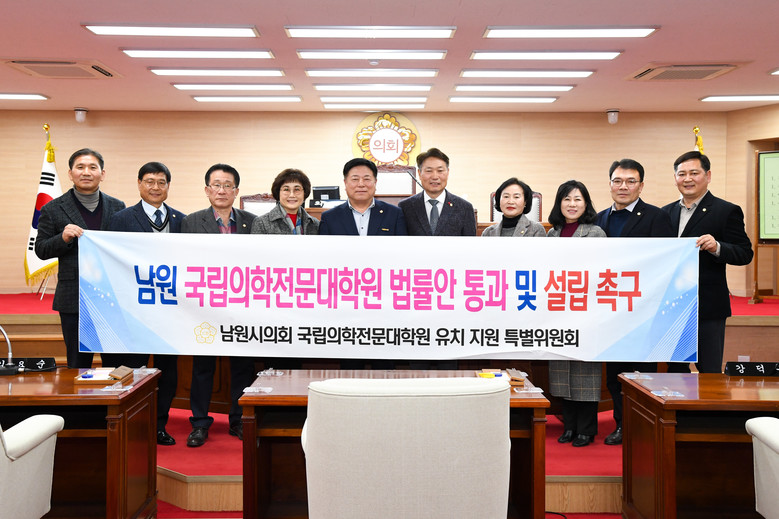 특히 지난해 11월 국립의학전문대학원 유치지원 특별위원회를 구성하여 공공보건의료대학 법안 통과를 위한 전방위적인 지원에 힘쓰는 한편 5분 자유발언, 건의안, 피켓시위 등 남원 공공의대를 설립하기 위해 총력을 다하는 모습을 보여주었다.