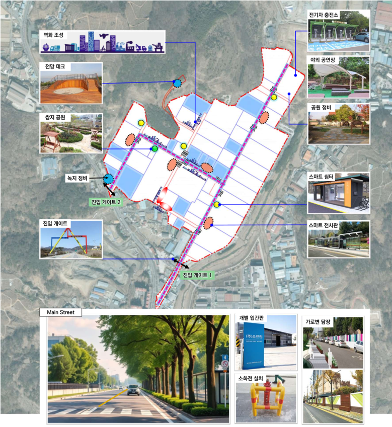 또한, 스마트 꽃길 조성, 소공원, 스마트쉼터 등을 구축하는 아름다운 거리 조성 플러스사업으로 진영농공단지의 중심거리를 안전하고 활기찬 문화⸱여가공간으로 탈바꿈시킬 예정이다.