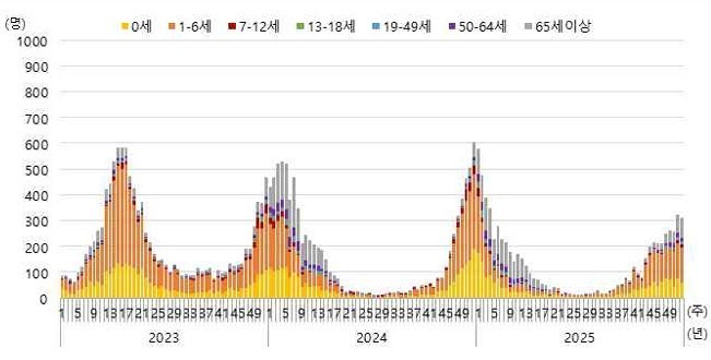 이번 동절기에는 지난해 10월부터 증감을 반복하며 증가 추세에 있으며, 입원환자 수는 300~400명대로 1월 1주부터 최근 3주 연속 증가하고 있다.