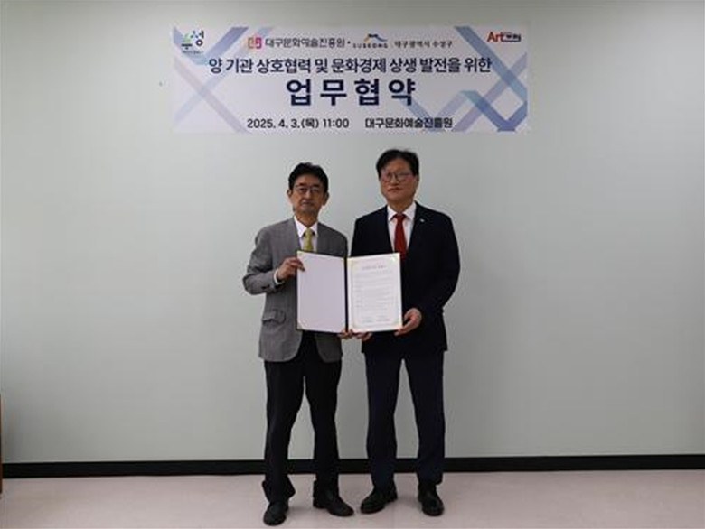 박순태 대구문화예술진흥원장은 “이번 업무협약은 시민을 위한 문화예술 향유 공간을 활성화하는 데 기여할 뿐만 아니라, 대구아트웨이를 비롯한 수성구가 세계 속 문화도시로서 발돋움하기 위한 초석이 될 것이다”며, “앞으로도 지속적으로 지역 발전과 문화예술 진흥, 문화경제의 상생 발전을 위해 수성구와 소통하고 협력해 나가겠다”고 말했다.