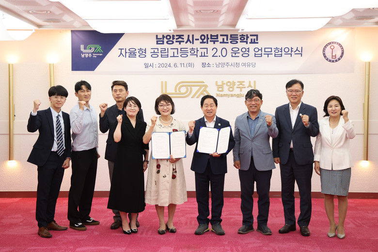 [남양주시 세계타임즈=송민수 기자] 경기도구리남양주교육지원청 와부고등학교(교장 백옥련)는 6월 11일(화) 남양주시와 남양주시청 목민관에서 자율형 공립고 2.0 성공적 추진 및 지역 교육력 제고의 기틀 마련을 위한 업무협약을 체결했다.