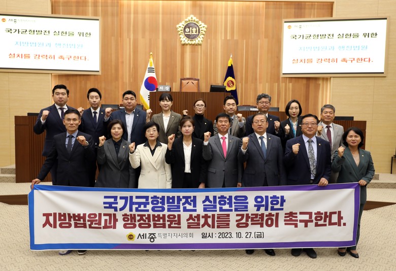 이에 세종시의회는 국회와 정부, 대법원 등 각종 관계기관에 ▲법원 설치를 위한 법령을 개정하여 법적 근거를 마련, ▲세종시민에게 헌법상 보장된 재판받을 권리와 효율적인 행정소송 대응을 위한 법원 설치 방안을 검토, ▲세종특별자치시가 실질적 행정수도의 위상을 확립할 수 있도록 법원 설치에 적극 협력할 것을 요청했다.