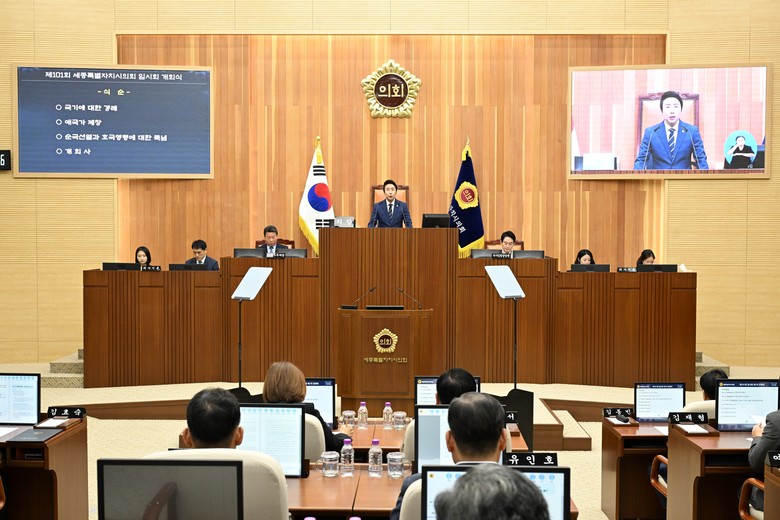 [세종 세계타임즈=이채봉 기자] 세종특별자치시의회(의장 임채성)는 13일 제101회 임시회를 개회하고 이날 제1차 본회의를 시작으로 24일까지 12일간 회기를 진행한다.