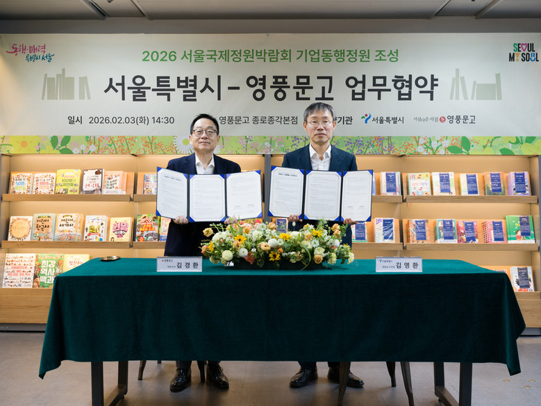 [서울 세계타임즈=이장성 기자] 서울시는 2026 서울국제정원박람회 ‘기업동행정원’ 조성을 위해 영풍문고와 업무협약을 체결했다고 밝혔다.