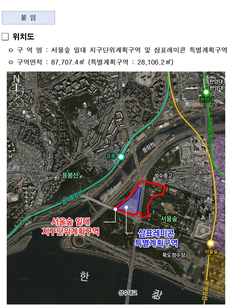 서울시 관계자는 “금번 서울숲 일대 지구단위계획 결정으로 삼표레미콘 부지가 성수지역을 선도할 수 있는 미래업무복합단지로 조성되고, 공공기여 활용을 통해 서울숲 일대 연계성 등 여건이 개선될 것으로 기대된다”고 밝혔다.