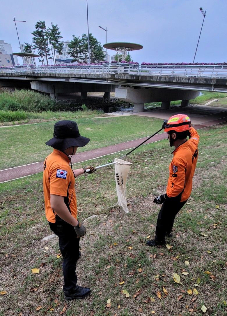 소방본부 관계자에 따르면 뱀에게 물렸을 때는 ▵물린 장소에서 즉시 벗어나 119에 신고하기 ▵반지나 시계 등 액세서리 제거하기 ▵깨끗한 물이 있다면 물린 부위를 씻어내기 ▵물린 부위에서 2∼3㎝ 윗부분을 거즈와 붕대로 감기 ▵옆으로 눕는 자세 취해주기 등의 응급 조치를 해야 한다.