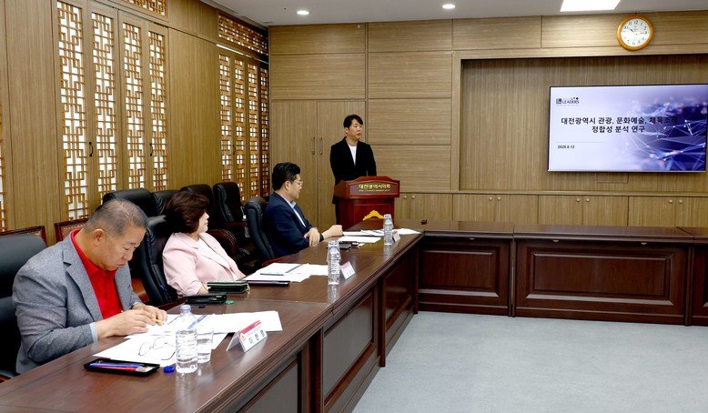 현재 대전시의회는 4개의 의원연구회를 구성해 활동하고 있으며, 이번 회의에서는 더 좋은 조례 연구회(회장 김영삼 의원)의 ‘대전광역시 관광·문화·체육 분야 조례 정합성 분석 연구’과제에 대한 심의를 진행했다.