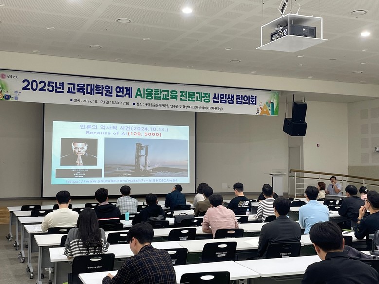 [경북 세계타임즈=한윤석 기자] 경북교육청(교육감 임종식)은 17일 구미시에 있는 새마을운동테마공원 연수관에서 AI융합교육 전문과정 신입생 45명을 비롯해 졸업생과 관계자 등 60여 명이 참석한 가운데 ‘2025년 교육대학원 연계 AI융합교육 전문과정 신입생 협의회’를 개최했다고 밝혔다.