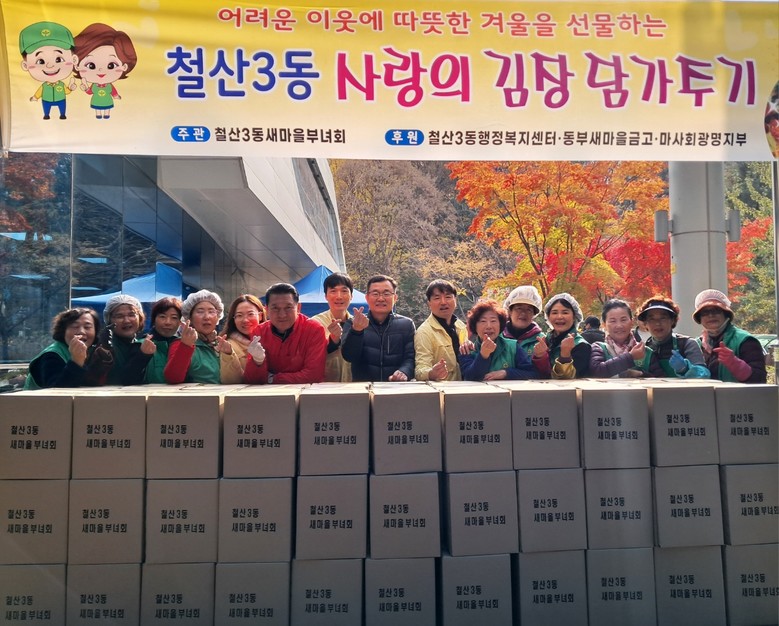한편, 철산3동 새마을부녀회는 이웃돕기 바자회, 불고기·반찬 나눔, 거리 청소 등 다양한 봉사활동으로 따뜻하고 살기 좋은 지역사회 조성에 힘쓰고 있다.