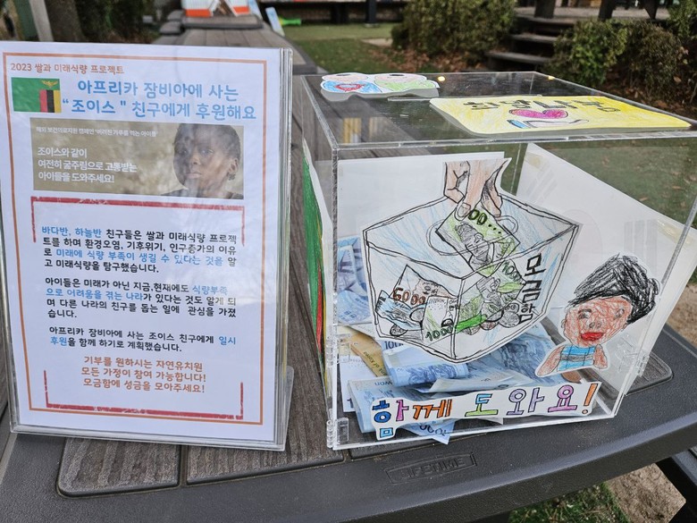 [의정부시 세계타임즈=송민수 기자] 의정부 자연유치원 7세 바다반과 하늘반 학생들이 미래식량 프로젝트를 통해 아프리카 잠비아에 사는 조이스 친구들에게 따뜻한 도움의 손길을 전해주었다. 이번 프로젝트는 환경오염, 기후위기, 인구증가로 인해 미래에 식량 부족이 생길 수 있다는 걸 알고 기부 캠페인을 진행하였다.