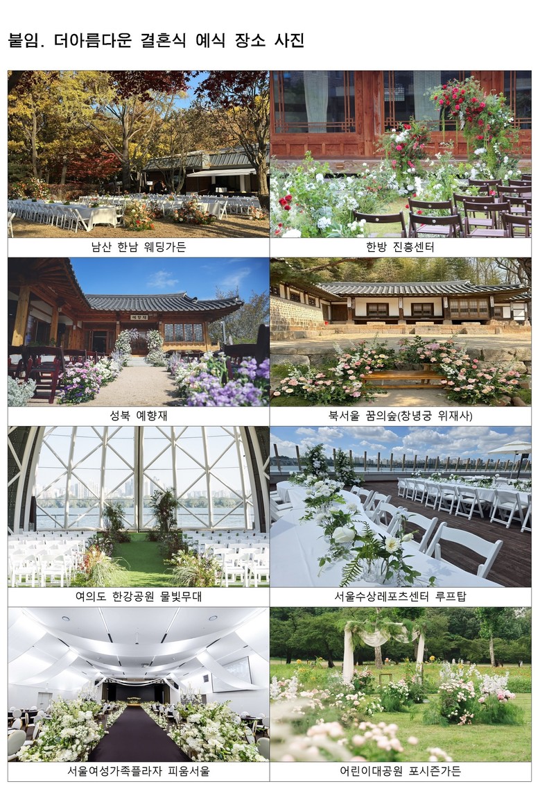 <스몰‧친환경 등 ‘테마웨딩’ 지원 강화… 주요 명소 웨딩사진 촬영‧첫 예식 지원도>