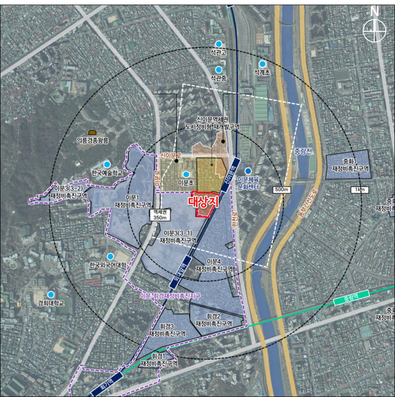 대상지는 1호선 신이문 역세권에 위치하며, 열악한 주거환경을 개선하기 위해 앞서 추진중인 ‘이문·휘경 재정비촉진지구 및 이문 3-1 재개발 정비사업과 연계하여 신이문역세권 일대에 새로운 도시환경을 조성하고자 한다,