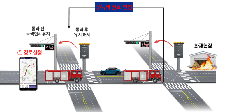 한편, 현재 인천시에서 운영 중인 긴급차량 우선신호 시스템은 이미 높은 효과를 보이고 있다. 2025년 9월 기준 화재 출동의 골든타임 달성률은 95%, 화재 외 출동은 96%에 달해, 긴급상황 대응력 향상에 크게 기여하고 있는 것으로 나타났다.