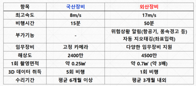LX도 21년도부터 모든 드론을 국산으로 구매하고 있으나, 국산장비가 외산장비에 비해 비행속도, 시간, 부가기능, 해상도, 1회 촬영 면적, 수리 기간 등 여러 이유에서 떨어지다 보니, 현장 조종 실무자들로부터 외면받고 있어 36%(31대)가 미운용되고 있다는 설명을 내놨다.