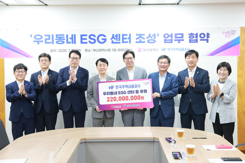 ◈ 한국주택금융공사, 지역 어르신의 안전하고 건강한 노후생활을 지원하는 사업의 원활한 추진을 위한 기부금 2억 2천만 원 전달… ▲우리동네 사회가치경영(ESG) 센터 10호점(부산진구) 조성 ▲부산형 해비타트 챌린지 ▲저소득 조손가정 생활지원금 지원사업 ▲노인 인식개선 프로젝트에 쓰일 예 [세계타임즈=부산 이용우 기자] 부산시(시장 박형준)는 오늘(28일) 오전 11시 시청 국제의전실에서 한국주택금융공사와 「우리동네 사회가치경영(ESG) 센터」 조성 등을 위한 업무협약 및 기부금 전달식을 개최한다고 밝혔다.
