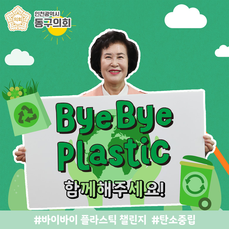 [동구 세계타임즈=심하린 기자] 인천 동구의회 유옥분 의장은 14일 일상 속 플라스틱 사용을 줄이기 위한 바이바이 플라스틱(Bye Bye Plastic) 챌린지에 참여했다.