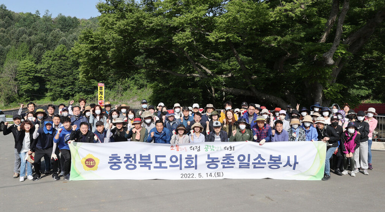 이날 박문희 의장과 의회사무처 직원 80여명은 주말도 반납하고 청주시 상당구 미원면 농가를 방문해 사과접과, 잡초 제거 등에 일손을 보태며 구슬땀을 흘렸다.