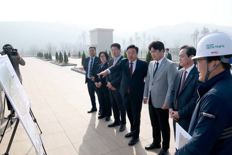 이후 방문한 갑천생태호수공원은 대전 서구 도안동 및 유성구 원신흥동 일원 43만 1,244㎡ 규모로 조성되는 대규모 친환경 공원으로, 950억 원의 사업비를 투입해 2025년 9월 개장을 목표로 하고 있다.