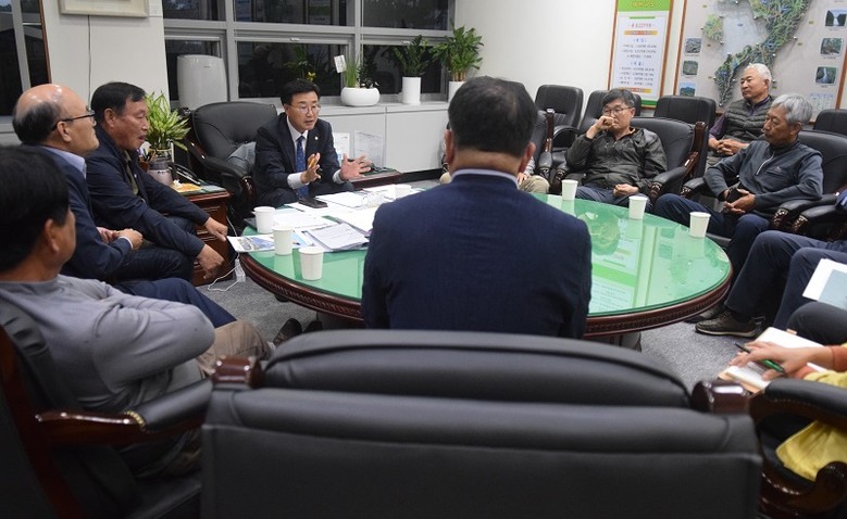 [완주군의회=세계타임즈 이상호 기자] 완주군의회 유의식 의장이 지난 15일 완주군 과수배 재배 농민들과 고온피해로 인한 대책 마련을 위한 간담회를 가졌다.