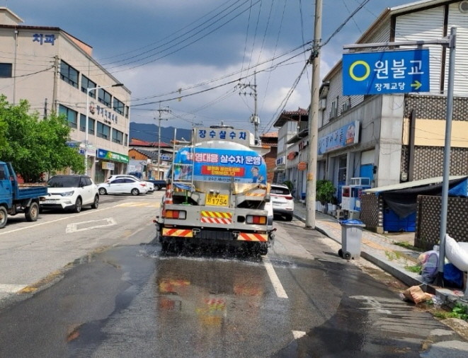 장수군 내 무더위쉼터 286개소, 그늘막 44개소 등 폭염 저감시설을 운영 중이며, 주요 시가지에는 살수차를 활용해해 도심 열섬현상도 완화하고 있다.