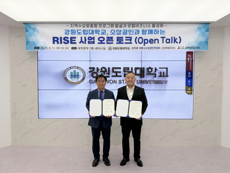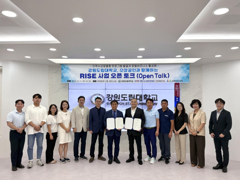 강원도립대학교 최근표 라이즈(RISE) 사업단장은 “대학의 자원을 지역 소상공인과 공유함으로써 지역 문제 해결형 취·창업 및 교육 프로그램을 발굴하고, 실질적 상생 성과를 창출하겠다”라고 밝혔다.