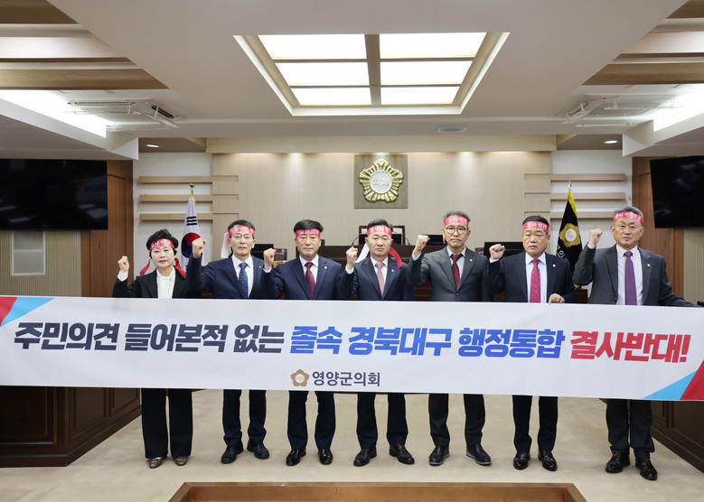 군의회는 “경북ㆍ대구 행정통합은 지방소멸 대응과 국가균형발전의 해법이 될 수 없다.”면서 “오히려 졸속 행정통합으로 인한 행정력의 낭비와, 지역적 특성과 자립성을 훼손하는 처사”라고 밝히면서 경북ㆍ대구 행정통합을 즉각 철회할 것을 촉구했다.