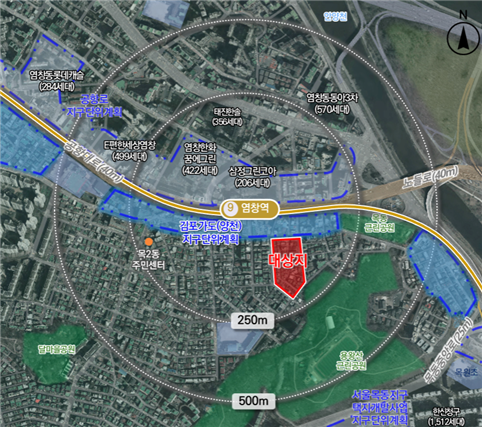 대상지는 지하철 9호선(급행) 염창역과 인접해 여의도·영등포 접근성이 뛰어난 도심 배후 주거지이며, 목2동 시장을 중심으로 상권과 유동인구가 활발한 지역이다. 반면, 이면부에는 저층 노후주택이 밀집해 도시환경이 열악하고 주거공급 수요가 꾸준히 제기돼 왔다.