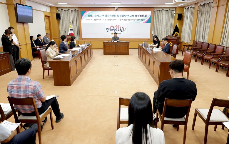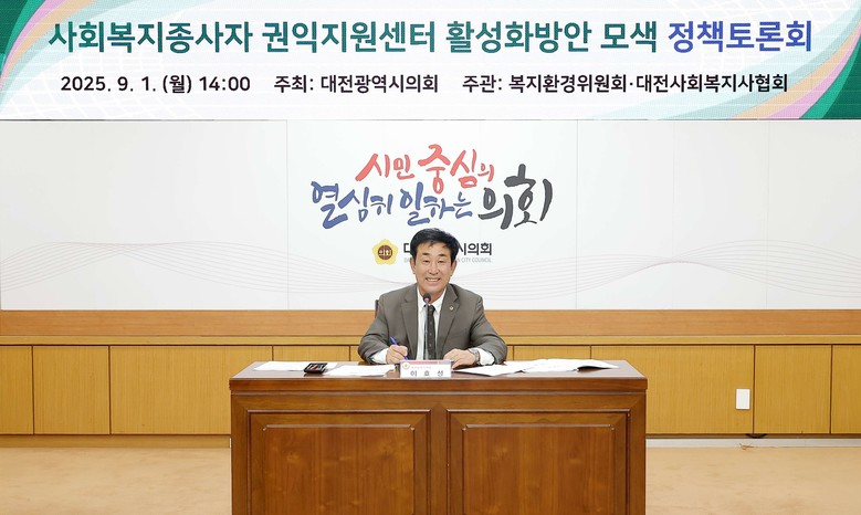 좌장을 맡은 이효성 의원은 마무리 발언을 통해 “사회복지 현장의 최일선에서 시민의 삶을 지탱하는 사회복지 종사자들의 권익이 제대로 보장되지 않는다면, 결국 대전 시민이 받는 복지서비스의 질도 위협받게 된다”며, “의회 차원에서 사회복지 종사자의 권익 보호를 위한 제도적 기반 마련에 적극적으로 앞장서겠다”고 지원 의지를 밝혔다.
