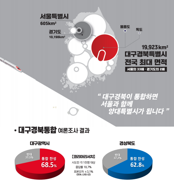 대구경북특별시가 출범하게 되면 서울과 함께 대한민국의 양대 특별시로서 국가균형발전은 물론 대한민국 제2의 도약을 견인할 것으로 기대된다.