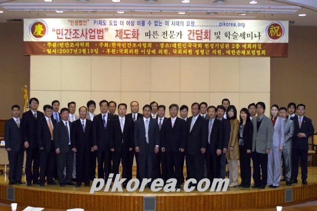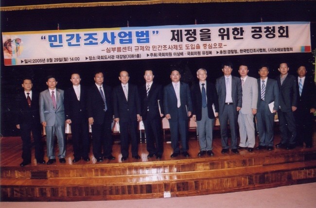 2005년 8월 29일 17대국회 국회도서관 대회의실에서 대한민국 최초로 공인탐정법 & 민간조사업법 법 제도화에 따른 공청회를 실시했다.