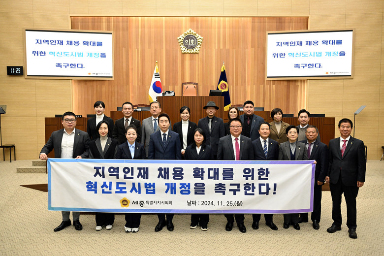 [세종 세계타임즈=이채봉 기자] 세종특별자치시의회(의장 임채성)는 25일 제94회 정례회 4차 본회의에서 박란희 의원(다정동, 더불어민주당)이 대표 발의한 ‘지역인재 채용 확대를 위한 혁신도시법 개정 촉구 건의안’을 채택했다.