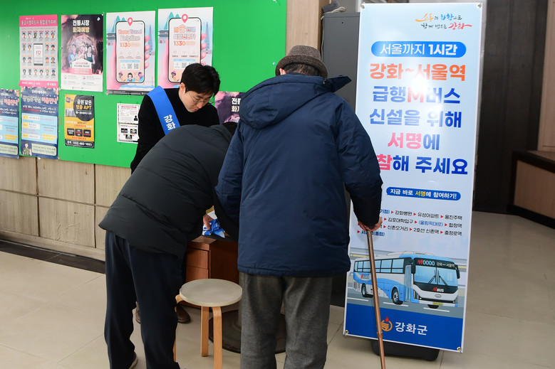 한편, 강화군은 이달부터 서울역 직행 M버스 노선 신설을 위한 범군민 서명운동을 본격 추진하고 있다. 서명운동을 통해 군민들의 염원을 하나로 모아, 이를 국토교통부 대도시권광역교통위원회 노선 공모 신청 시 제출해 상반기 내 가시적인 성과를 도출한다는 계획이다.