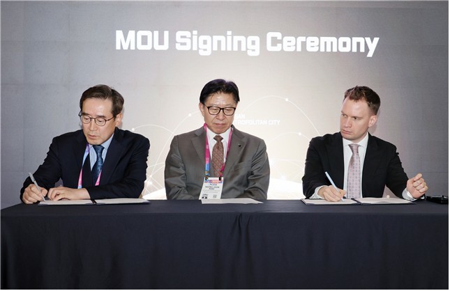 ▲ 부산경제진흥원-헝가리 수출진흥청 MOU 체결 사진 좌측부터 부산경제진흥원장 송복철, 부산시장 박형준, 헝가리 수출진흥청(HEPA) 부대표 Dr. Gábor Peter Artner |