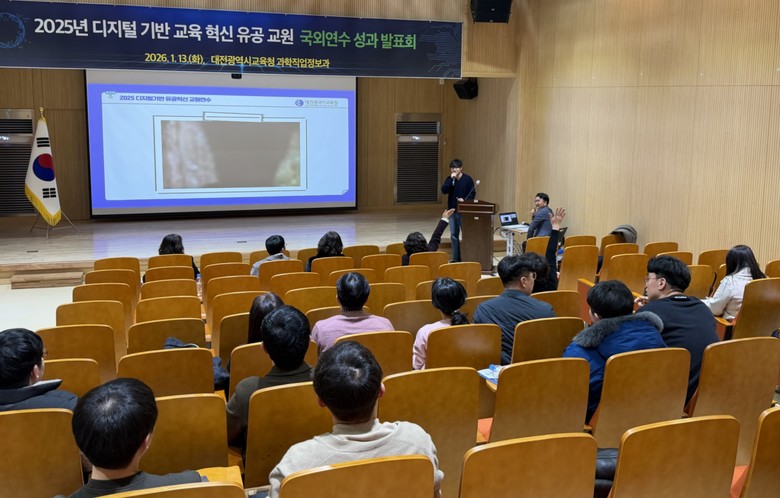 [대전 세계타임즈=이채봉 기자] 대전시교육청은 1월 13일 대전교육정보원에서 연수 참여 교원과 교육청 관계자 등 30여 명이 참석한 가운데 ‘2025 디지털 기반 교육혁신 유공 교원 국외연수’ 성과 발표회를 개최했다고 밝혔다.