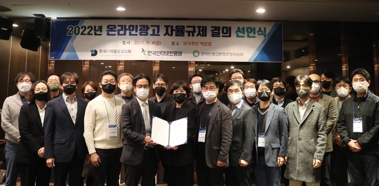 [세계타임즈 백진욱 기자] 지난 11.4(금) 한국인터넷진흥원(KISA, 원장 이원태)이 (사)한국디지털광고협회(회장 목영도)와 함께 광고업계 협력의지를 담은 온라인광고분쟁 관련 자율규제 결의 선언식을 개최했다고 밝혔다.