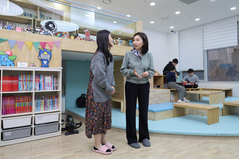 먼저 우면 지역아동센터를 찾아 시설을 돌아보고 돌봄 프로그램을 참관했다. 지역아동센터는 돌봄이 필요한 18세 미만 아동을 대상으로 돌봄, 급식, 교육 및 놀이 프로그램 등을 제공하고 있다.