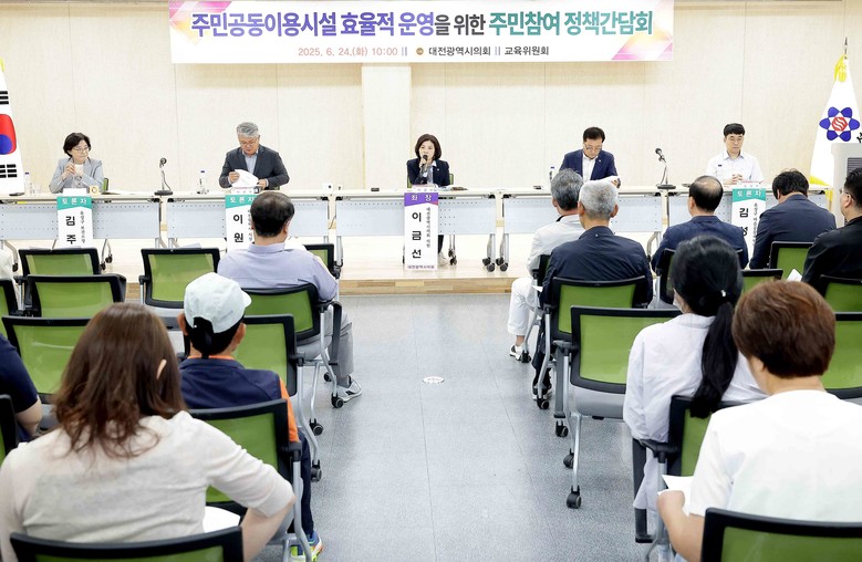 [대전 세계타임즈=이채봉 기자] 대전시의회 교육위원회는 24일 구즉동 행정복지센터 3층 대회의실에서 현재 조성하고 있는 주민공동이용시설에 대한 사업의 진행 상황과 개관 이후 시설의 구성 및 운영 계획을 듣고 지역 주민들의 의견을 청취하고자‘주민공동이용시설 효율적 운영을 위한 주민참여 정책간담회’를 개최했다.