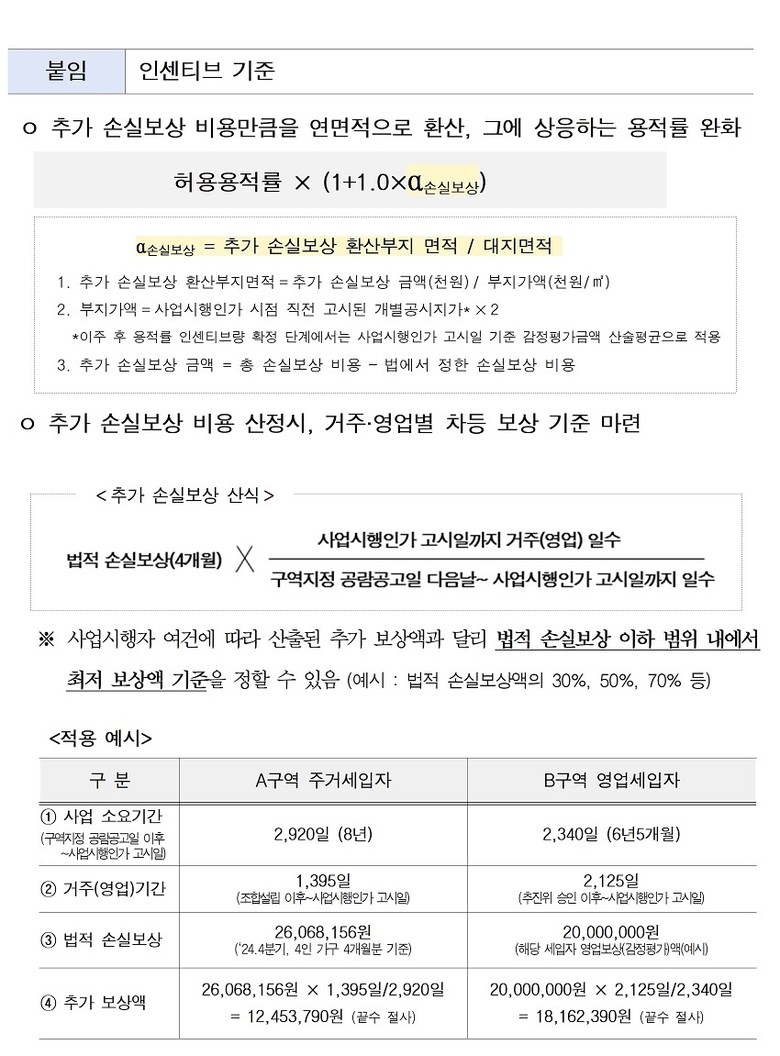 시는 사업시행자가 법적 의무는 아니지만 비법적 세입자에게 자발적으로 추가 손실보상을 실시하면, 해당 비용을 부지면적으로 환산해 용적률 인센티브를 받을 수 있는 파격적인 제도를 시행한다.