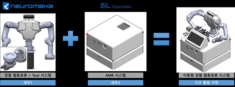 ㈜뉴로메카는 양팔 로봇의 충돌방지 움직임 제어기술, 다기능 툴 체인지 기술 개발 등을 추진한다. 개발된 이동형 양팔 협동로봇은 PCB 라우터 공정, 자동차부품 물류 공정 등 실제 제조 현장에 실증돼 상용화 모델로 보급될 예정이다.