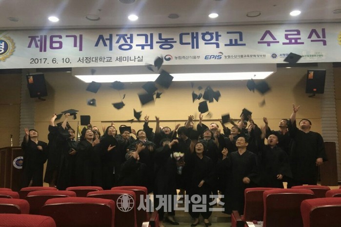 [세계타임즈 이영진 기자]서정대학교(총장 김홍용)는 서정귀농대학교(학교장 김문선) 6기생들이 11주간 117시간의 교육을 마치고 수료식을 가졌다고 12일 밝혔다.