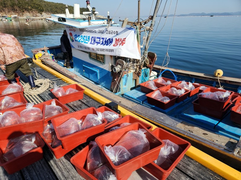 이번 연구소에서 생산한 어린 대구는 지난 1월 각 지역수협 수정란 방류 사업현장에서 어미로부터 채취한 알과 정자를 인공수정 후 부화시켜 키운 것이다. 수정란은 연구소로 수송하여 전용 부화기에서 12일간 부화 과정을 거쳐 부화 후 2주간 연구소 내 육상수조에서 먹이를 공급하며 사육관리 후 각 방류지역으로 이송하여 방류하였다.